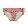 The Lucky Kids Frill Bikini Pant in Spliced from our Summer Swim 2025 Collection. A kids bikini pant with a triple frill detail at back.kids bikini swim bottom, lycra with shiny finish, bikini bottom with contrasting raw cut triple frill, pant only, top sold separately