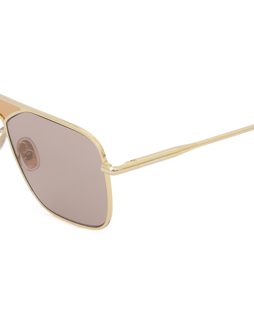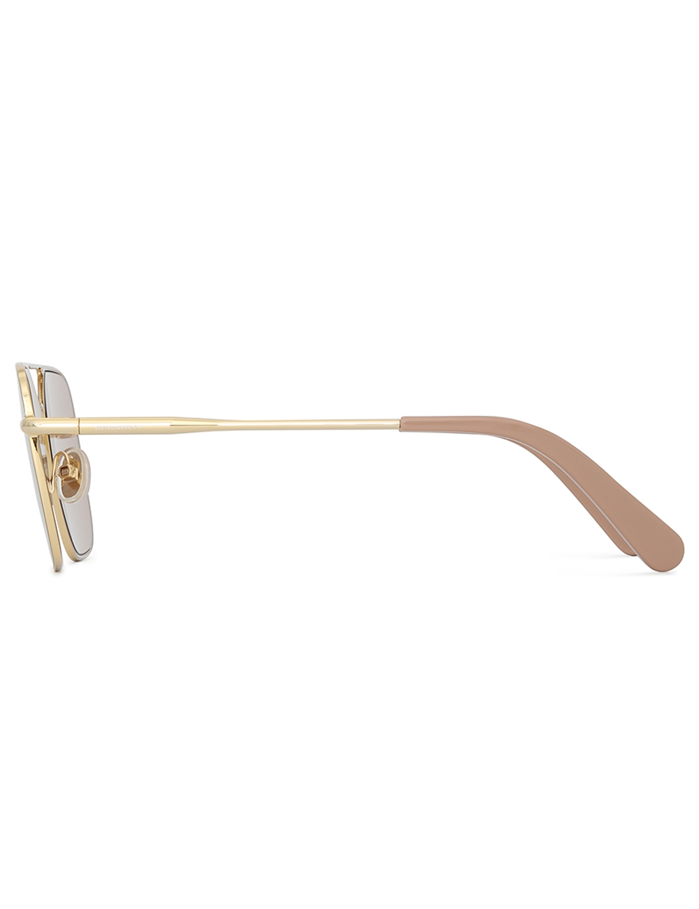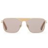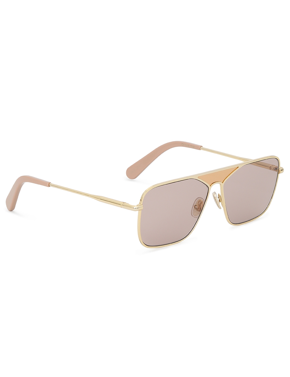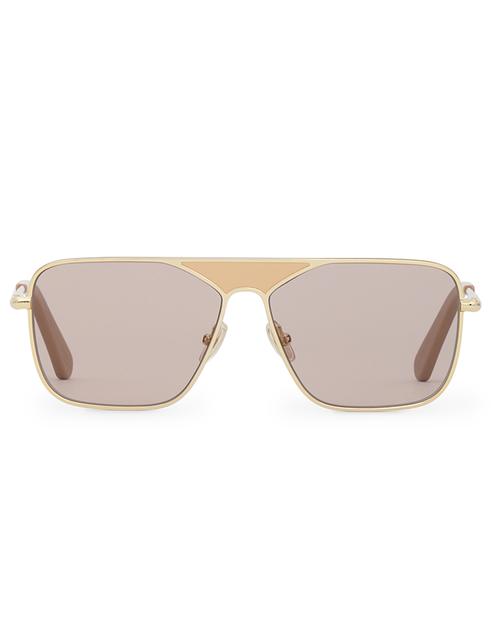 The Amee Navigator in Taupe from our Spring 2025 Collection, Illumination. A navigator shaped metal frame featuring custom acetate temple tips and solid coloured lenses. acetate temple tips, partially exposed metal core, pink lens are category 1, taupe lens are category 2, comes with zimmermann case, dust bag and storage box