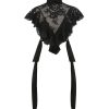 The Hypnotic Lace Bodice in Black from our Fall 2025 Collection, Hypnotic. A lace bodice featuring ruffle detailing and decorative side bow ties. centre back invisible zip closure, side bodice panel with additional side zip, lace trim applique around collar and frills