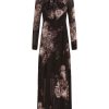 The Hypnotic Maxi Shirt Dress in Ghost Floral from our Fall 2025 Collection, Hypnotic. A long sleeve dress featuring a classic collar, pussybow necktie and buttons down the centre front. shirt style maxi dress, removable self-rouleau necktie, long fitted sleeves and cuffs, buttons down centre front placket, comes with a separate slip