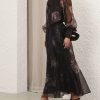The Hypnotic Maxi Skirt in Ghost Floral from our Fall 2025 Collection, Hypnotic. A silk maxi skirt featuring a fixed waistband and heavy gathering throughout.100% silk fabric, layers of tulle throughout, invisible zip closure at left side, lined
