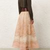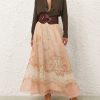 The Hypnotic Organza Maxi Skirt in Map Print from our Fall 2025 Collection, Hypnotic. A silk organza maxi skirt featuring a gathered waist and placement print throughout. 100% silk fabric, invisible zip closure at left side, gathers at waistband, mid-rise silhouette, fully lined
