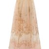 The Hypnotic Organza Maxi Skirt in Map Print from our Fall 2025 Collection, Hypnotic. A silk organza maxi skirt featuring a gathered waist and placement print throughout. 100% silk fabric, invisible zip closure at left side, gathers at waistband, mid-rise silhouette, fully lined