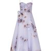 The Hypnotic Picnic Dress in Lilac Poppy from our Fall 2025 Collection, Hypnotic. A silk linen midi dress featuring a sweetheart neckline, a structured bustier bodice and a full flared skirt.structured bodice with boning and underwire, adjustable straps for versatile fit, removable rouleau belt with flower trim, shirred back with invisible zip closure, flared skirt, side seam pockets
