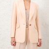 The Hypnotic Tailored Jacket in Cream from our Fall 2025 Collection, Hypnotic. A longline wool blend jacket featuring a single breasted closure, peak lapels and lightly padded shoulders.wool blend jacket, left chest welt pocket, branded buttons at front closure and sleeve cuffs, slanted welt pockets with flaps, single back vent, fully lined