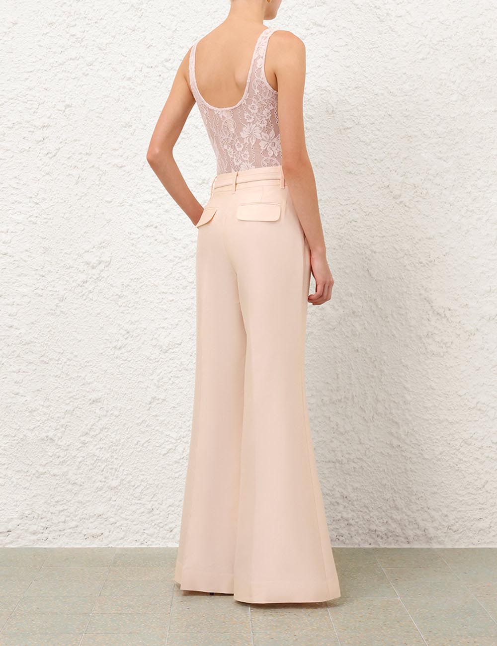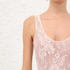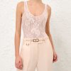 The Lace Scoop Bodysuit in Light Pink from our Fall 2025 Collection, Hypnotic. A lace bodysuit featuring mesh lining, with a scoop neckline and back. stretch lace bodysuit, mesh lining, scoop neckline and back, fixed straps, slip on style