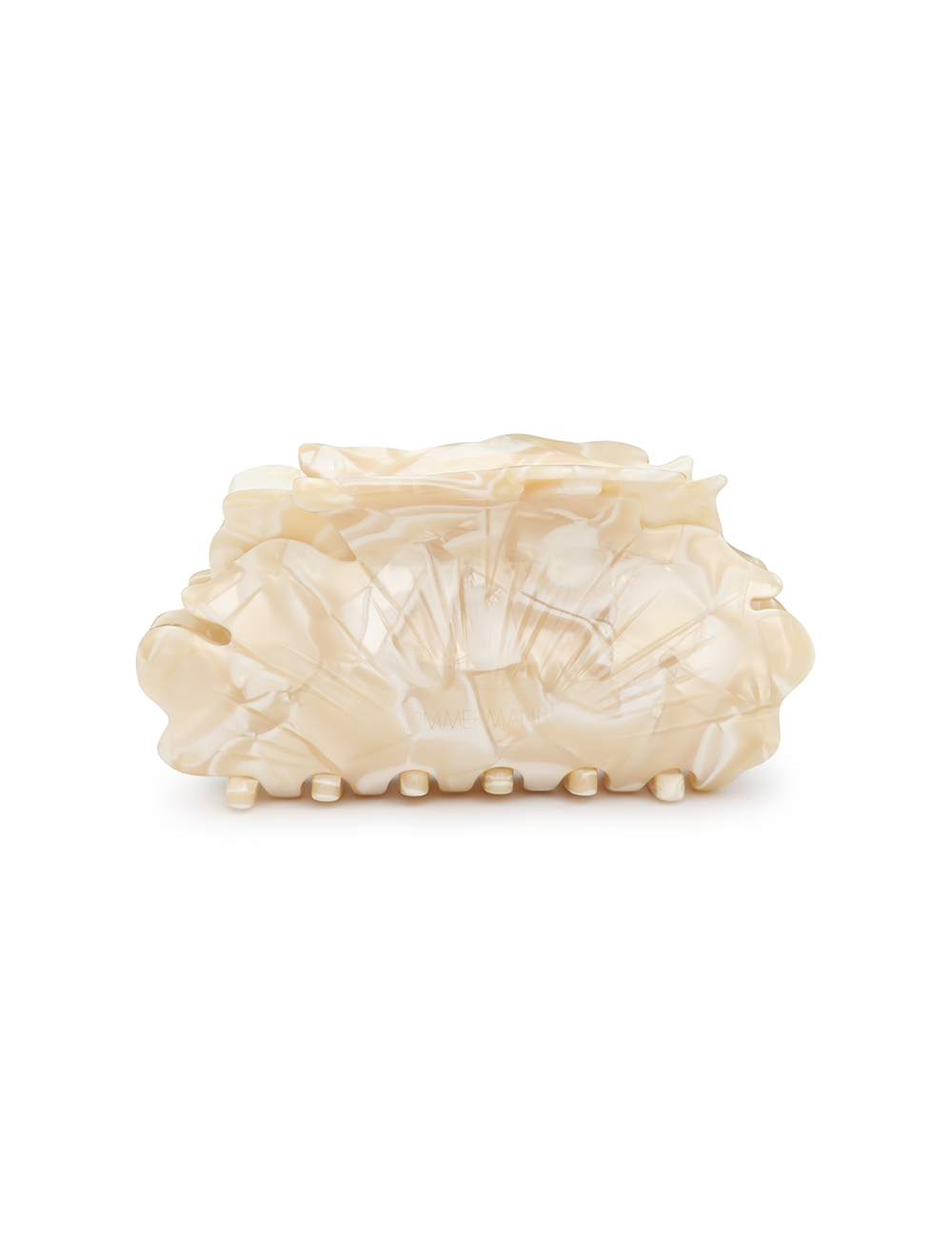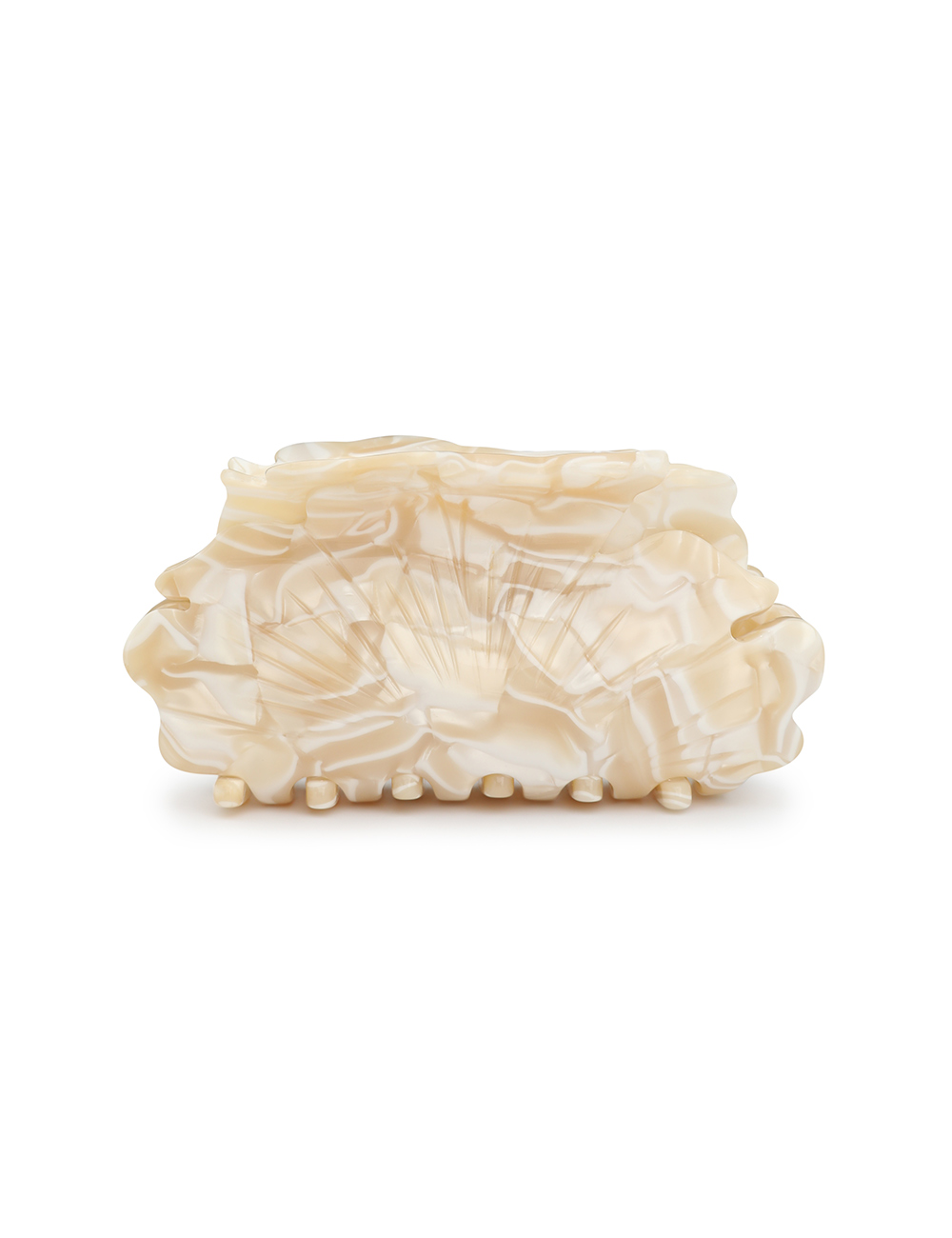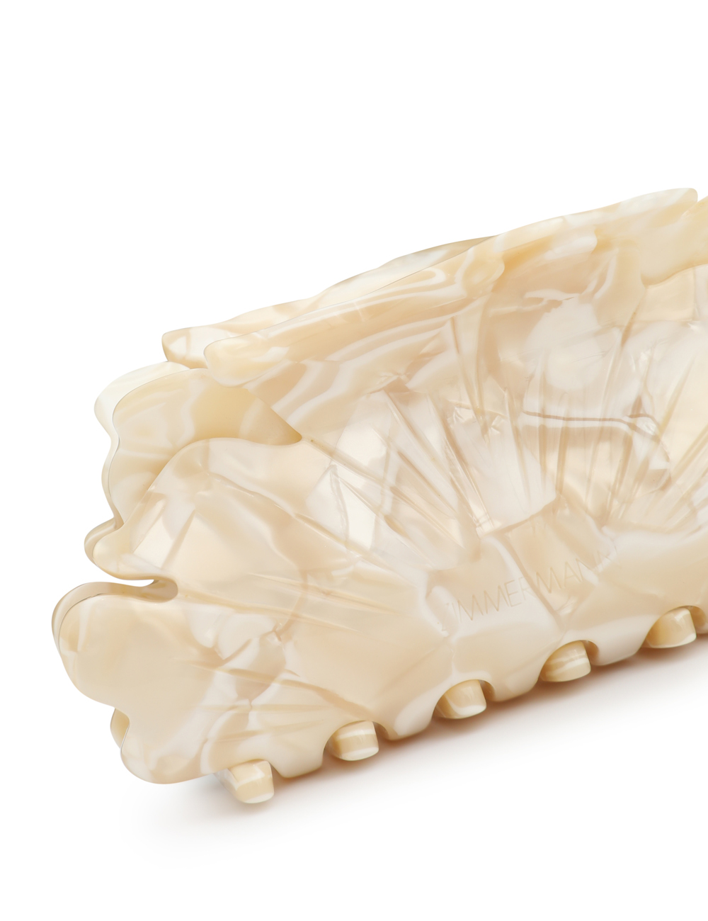 The Radiate Clasp in Shell from our Fall 2025 Collection, Hypnotic. An acetate hair clasp featuring a petal design. acetate, petal hair clasp
