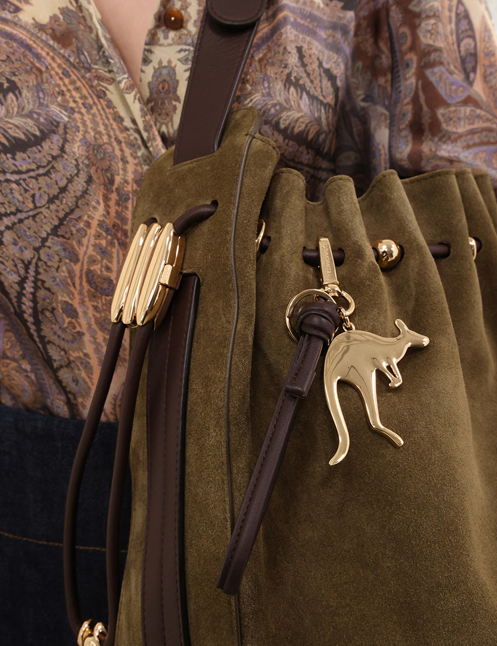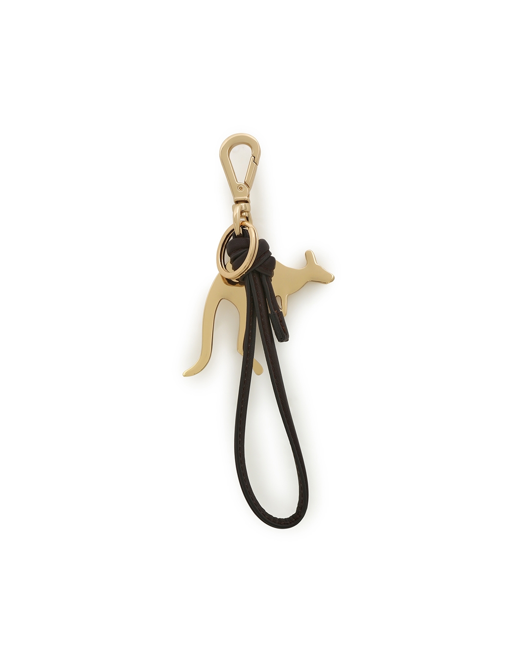 The Rapture Bag Charm in Coffee from our Fall 2025 Collection, Hypnotic. A leather bag charm featuring a kangaroo charm and gold plated hardware.bag charm, full-grain leather, kangaroo charm, gold plated hardware, secure clasp closure
