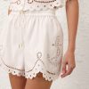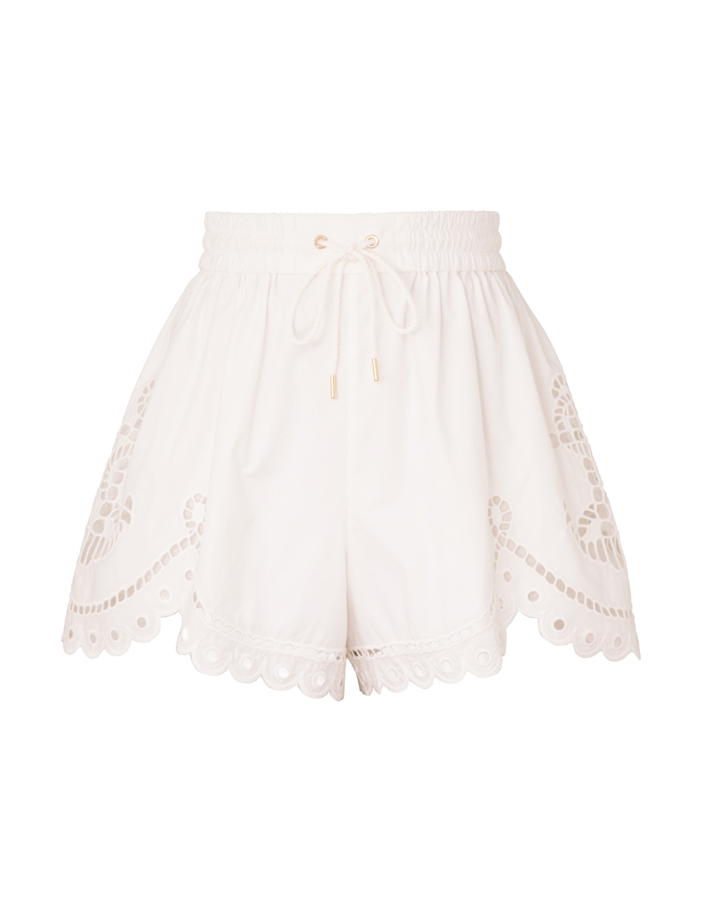 The Scarborough Embroidered Short in Ivory from our Summer Swim 2025 Collection. A cotton short featuring an elasticated waistband and scalloped edging. 100% cotton fabric, drawstring waist with toggle ends, scalloped trim, lined