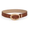 The Swirl Belt 40 in Tan from our Spring 2025 Collection, Illumination. A leather belt featuring gold buckle hardware. waist belt, leather, gold buckle hardware, 40mm wide