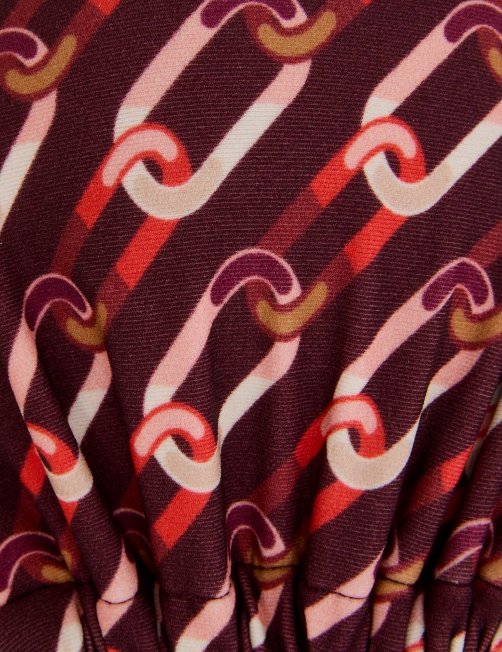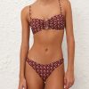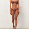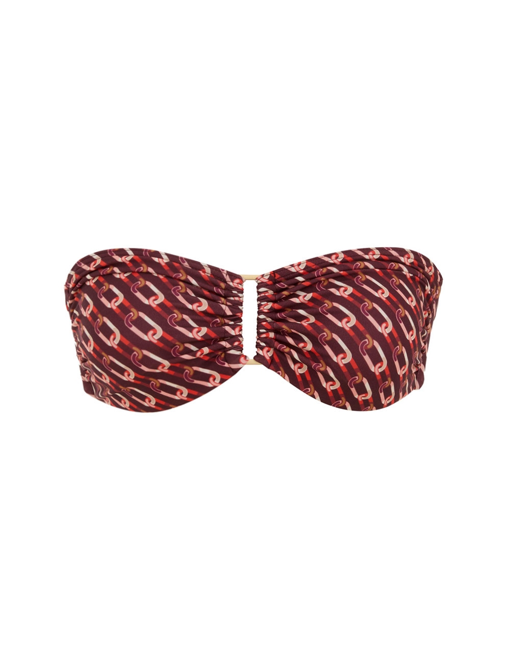 The Separates Wide Link Bikini Top in Burgundy Multi from our Summer Swim 2025 Collection. A bandeau bikini top constructed from form-fitting Italian lycra featuring gripper elastic and boning in the side seams, finished with a wide link detail at centre bust. italian lycra, bandeau bikini top, gathered throughout, wide link detail at centre bust, removable cups, removable adjustable shoulder straps, top only, pant sold separately